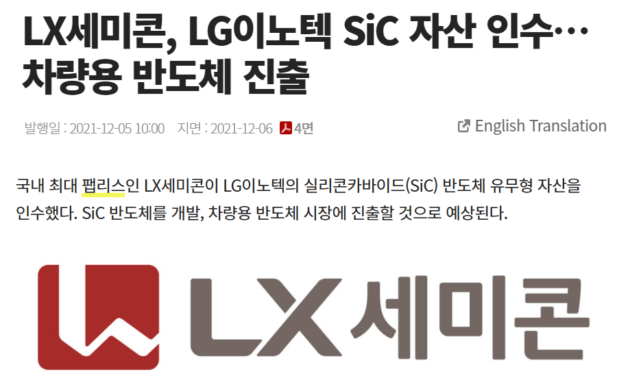 LX세미콘은 최근 1월 방열/세라믹기판에 대한 채용공고가 나왔다. 즉 양산을 위한 준비를 하고 있다고 보여진다.