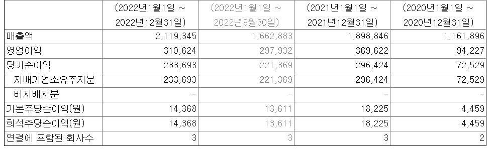 - 시장예측치 23.1Q 매출 4,302억(예측치) → 5,215억(실적) , 당기순이익 289억(예측치) → 357억(실적)