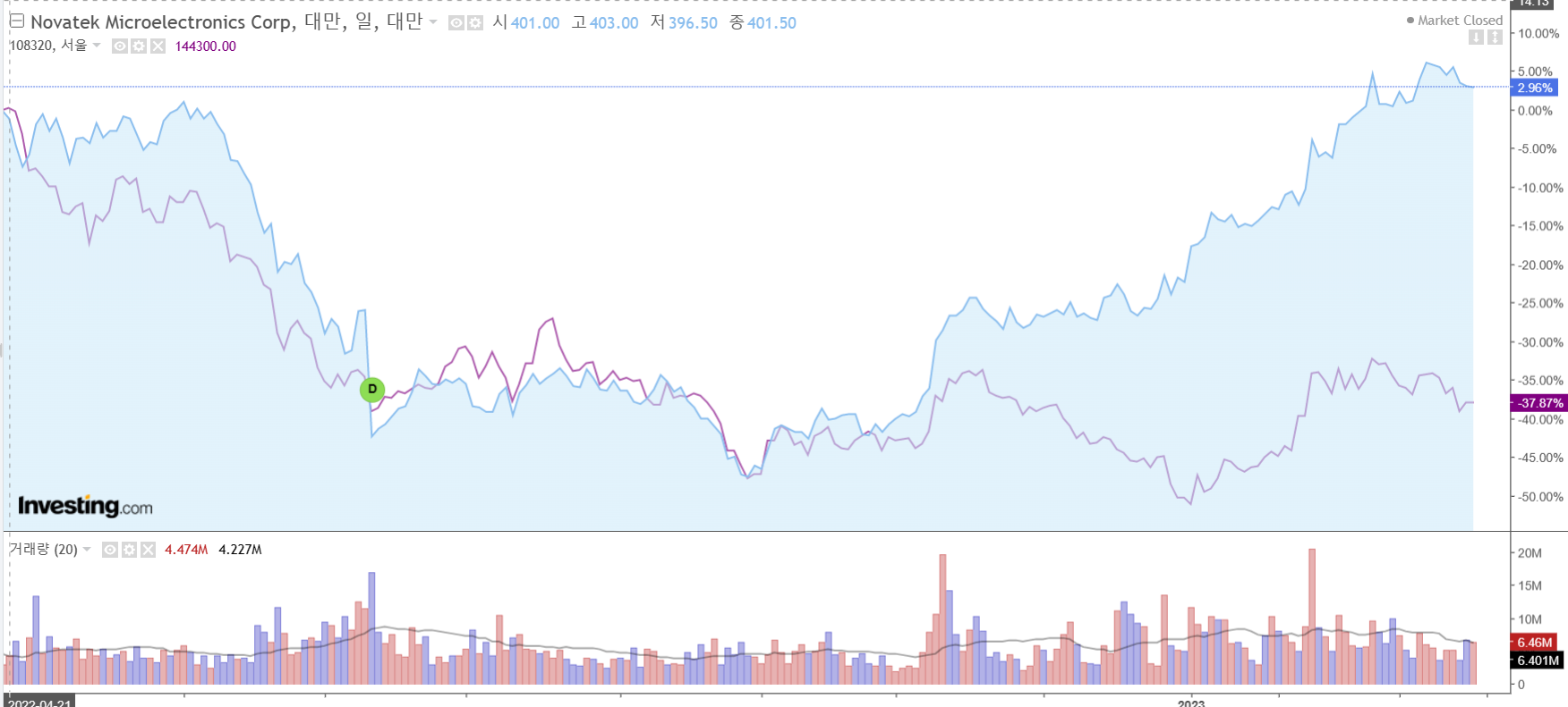 노바텍의 경우 YoY 기준 매출액과 영업이익율이 꺾인것으로 보여진다. (반면 LX세미콘은 21년대비 22년 매출액은 YoY 증가하였다.)