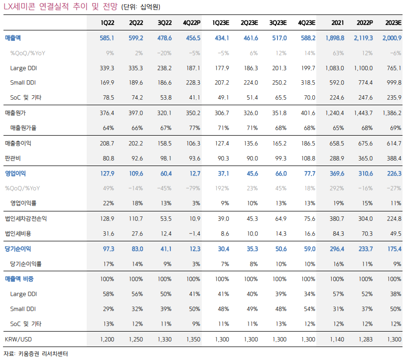 추가로 성장하고자 하는 산업군에서 제대로된 성과가 나오지 않고 적자사업 구조가 이어지게 된다면 시장의 Re-Rating을 기대했던 LX세미콘 주가에 오히려 De-Rating을 반영하게 되는 일이 발생할 수도 있다.